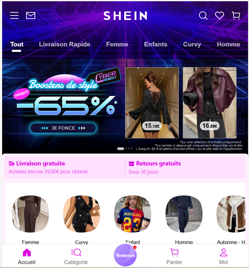 | Shein | Mode féminine très tendance, accessoires | -60% | Des prix déjà bas, multipliés par une remise énorme. Idéal pour les petits budgets. |